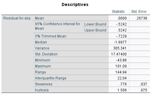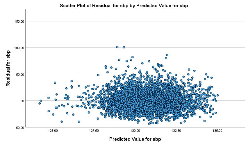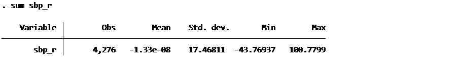 I have called my new variable “sbp_r”, and the option “resid” specifies that I want residuals rather than the default predicted linear values.